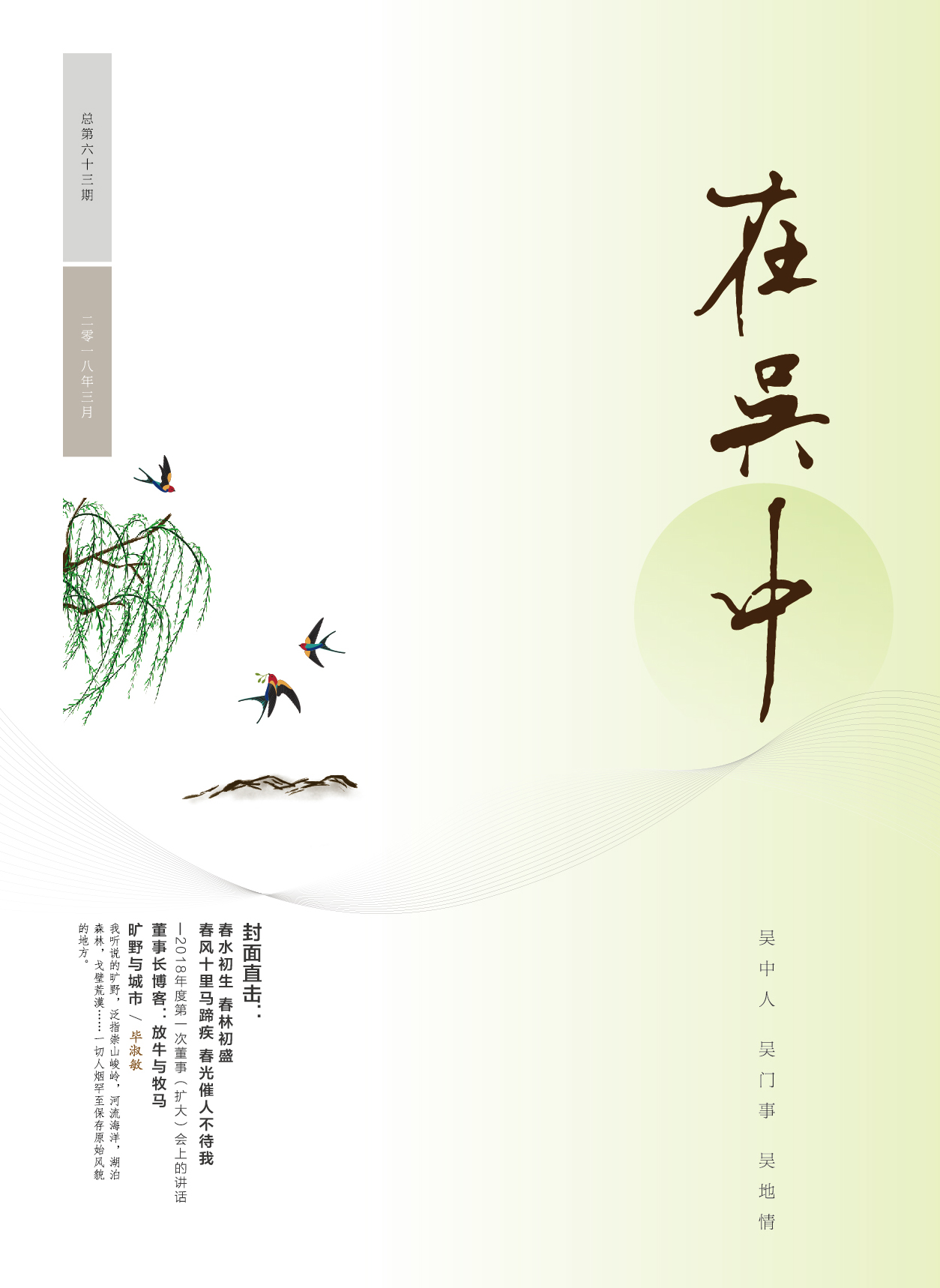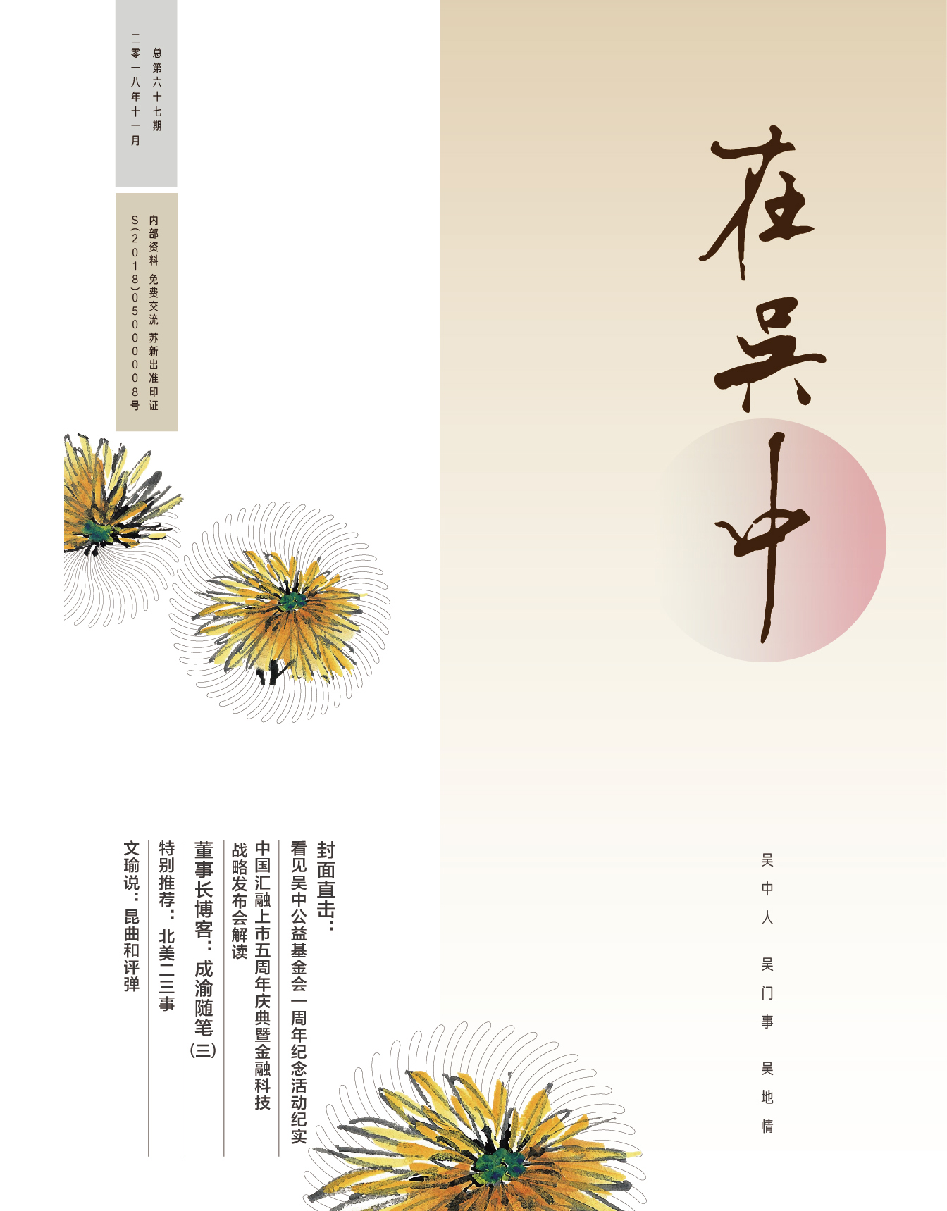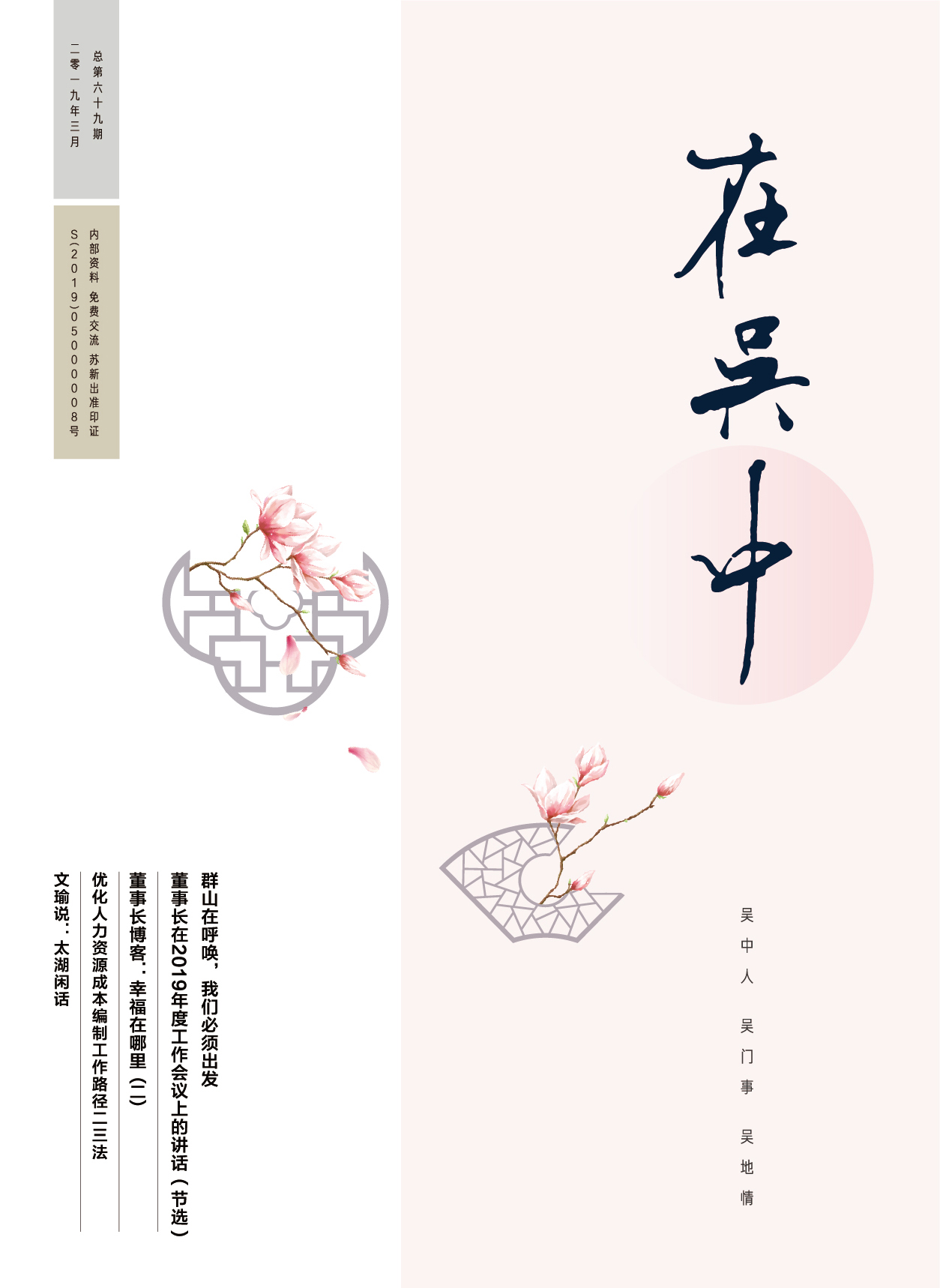 《在吳中》創(chuàng)刊于2005年,蘇州市十佳內(nèi)刊。以述吳中人、記吳中事、傳吳中情為宗旨,堅持記錄吳中集團的發(fā)展,為品牌建設(shè)發(fā)展助力?!对趨侵小穯纹谟∷?500冊,主要用以企業(yè)內(nèi)部交流,其意在傳達的吳中集團的力量、文化和精神。每期《在吳中》都記載著吳中人工作、學(xué)習(xí)、生活的實時動態(tài),所見所聞、所思所想、所作所為,總結(jié)借鑒企業(yè)經(jīng)營管理之道,汲取吳地人文精髓,廣受社會各界的好評和認可。